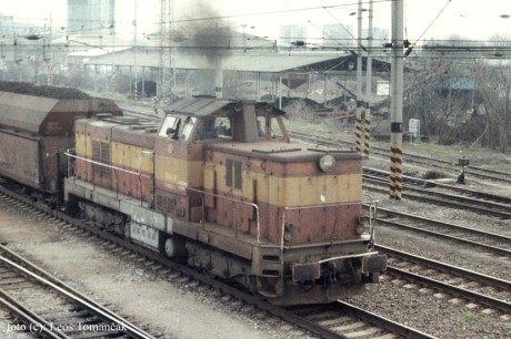 Po Novém roce 1993 už uhelné vlaky z Dubňan jezdily s jednou lokomotivou. 6. dubna 1993 vidíme z hodonínského stavědla č. 3 vlak Pn 64885 a vzápětí posunový díl na vlečku EHO. V čele je 735.009, řízená strojvedoucím Vladimírem Vančurou.Foto: Leoš Tomančák